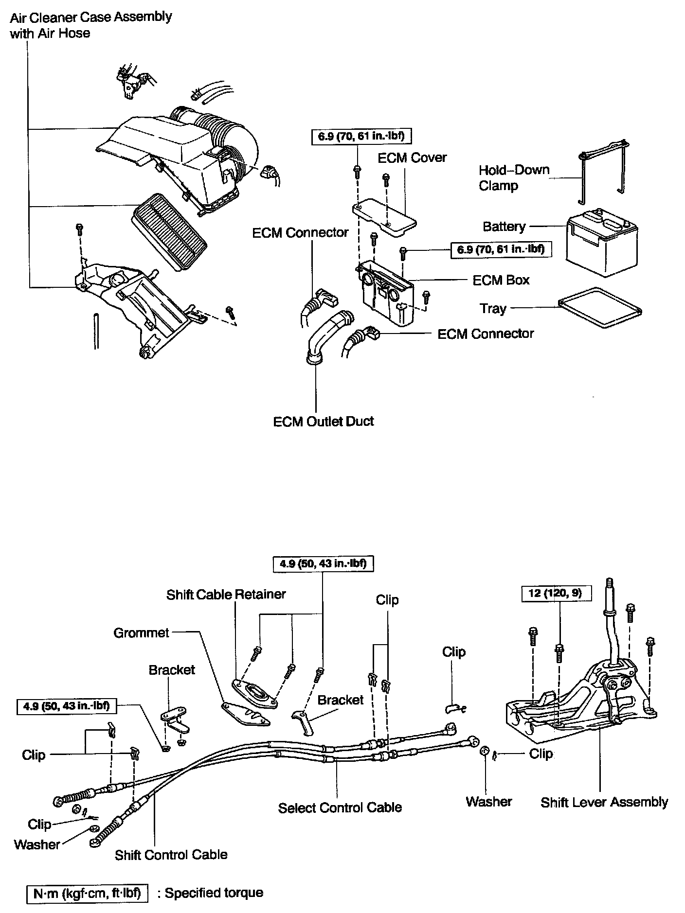 SHIFT LEVER AND CONTROL CABLE W/ RELATED COMPONENTS