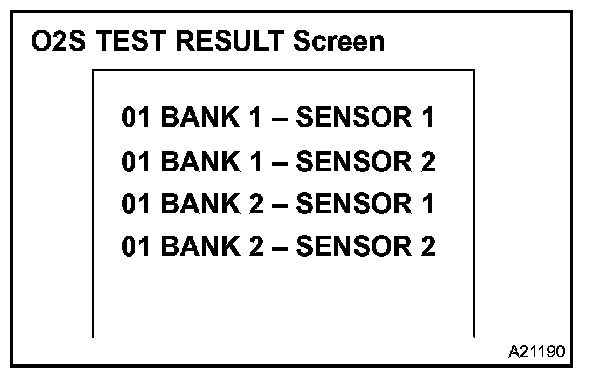 b. On the tester screen, select the following menus: DIAGNOSIS/CARB OBDII/O2S TEST RESULT. A list of the O2S equipped on the vehicle will be displayed.