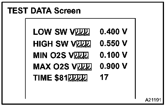 If the TEST DATA value appearing on the scan tool is out of the standard value, the O2S is malfunctioning. If it is within the standard value, the O2S is functioning normally. However, if the value is on the borderline of the standard value, the O2S may malfunction very soon.
