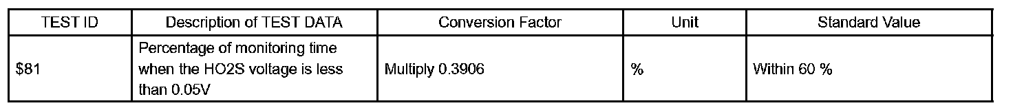 2. Find the Conversion Factor value of "TIME $81" in the O2S TEST RESULT chart. 0.3906 is specified for $81 in this chart.