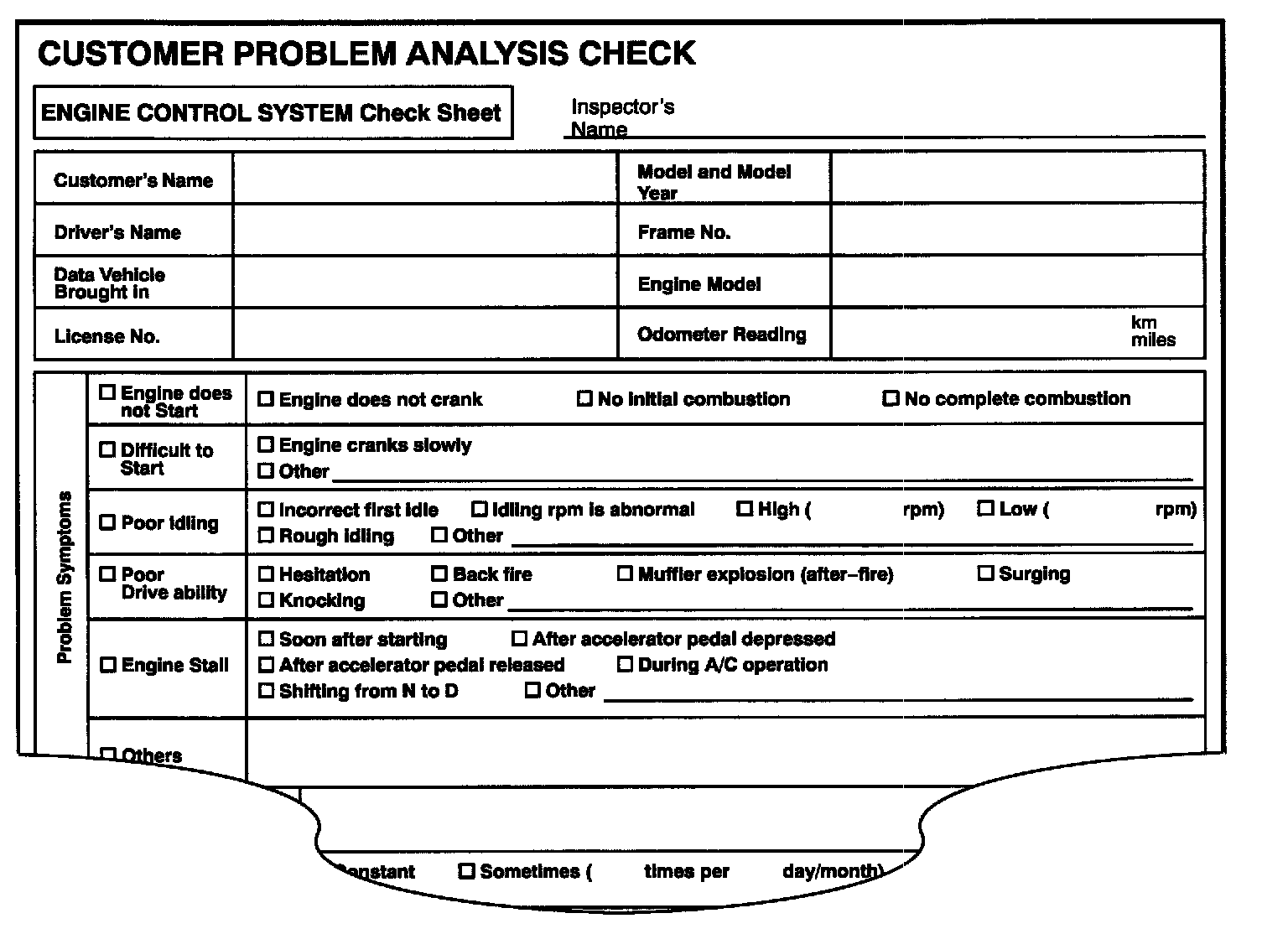 (Sample) Engine control system check sheet