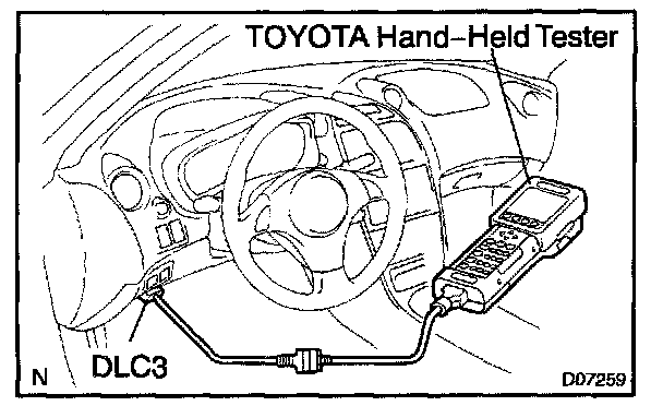 a. Connect the TOYOTA hand-held fester to the DLC3.