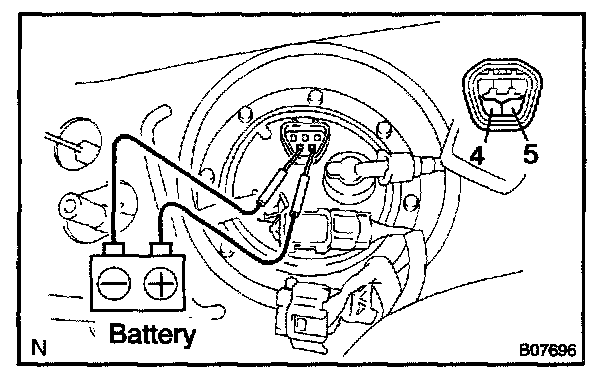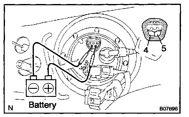 e. If you have no TOYOTA hand-held tester, connect the positive (+) lead from the battery to terminal 4 of the connecter, and the negative (-) lead to terminal 5.