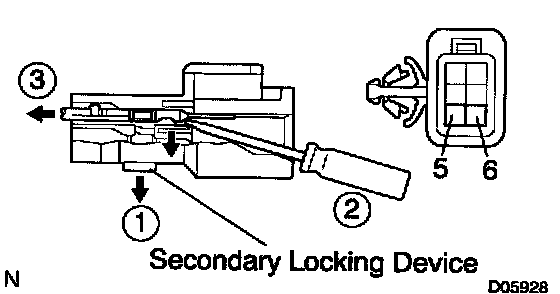 c. Release the locking log of the terminals 5 and 6, and pull the terminals out from the rearward.