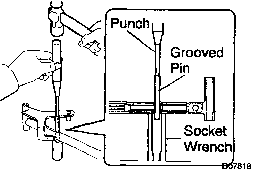 b. Using a punch and hammer, remove the grooved pin.