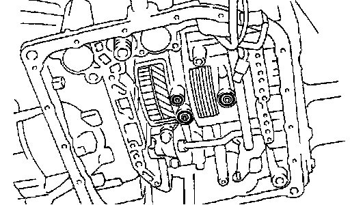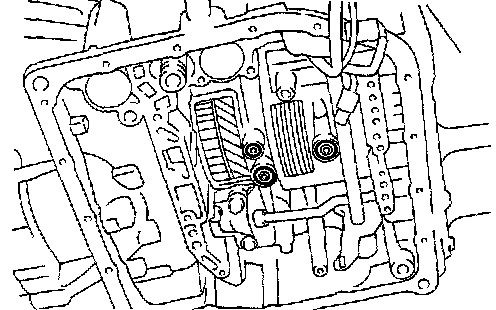 c. Check that the manual valve lever contacts the center of the roller at the tip of the detent spring.