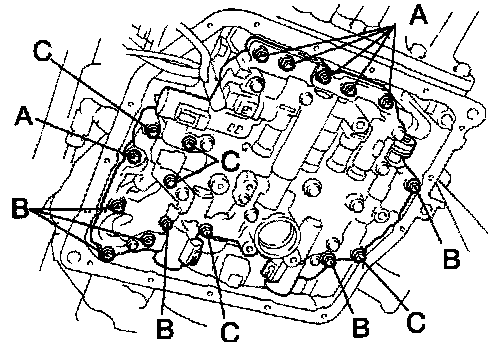 6. DISCONNECT 5 SHIFT SOLENOID VALVE CONNECTORS