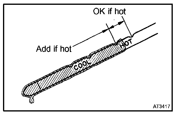- Only use the COOL range on the dipstick as a rough reference when the fluid is changed or the engine does not run.