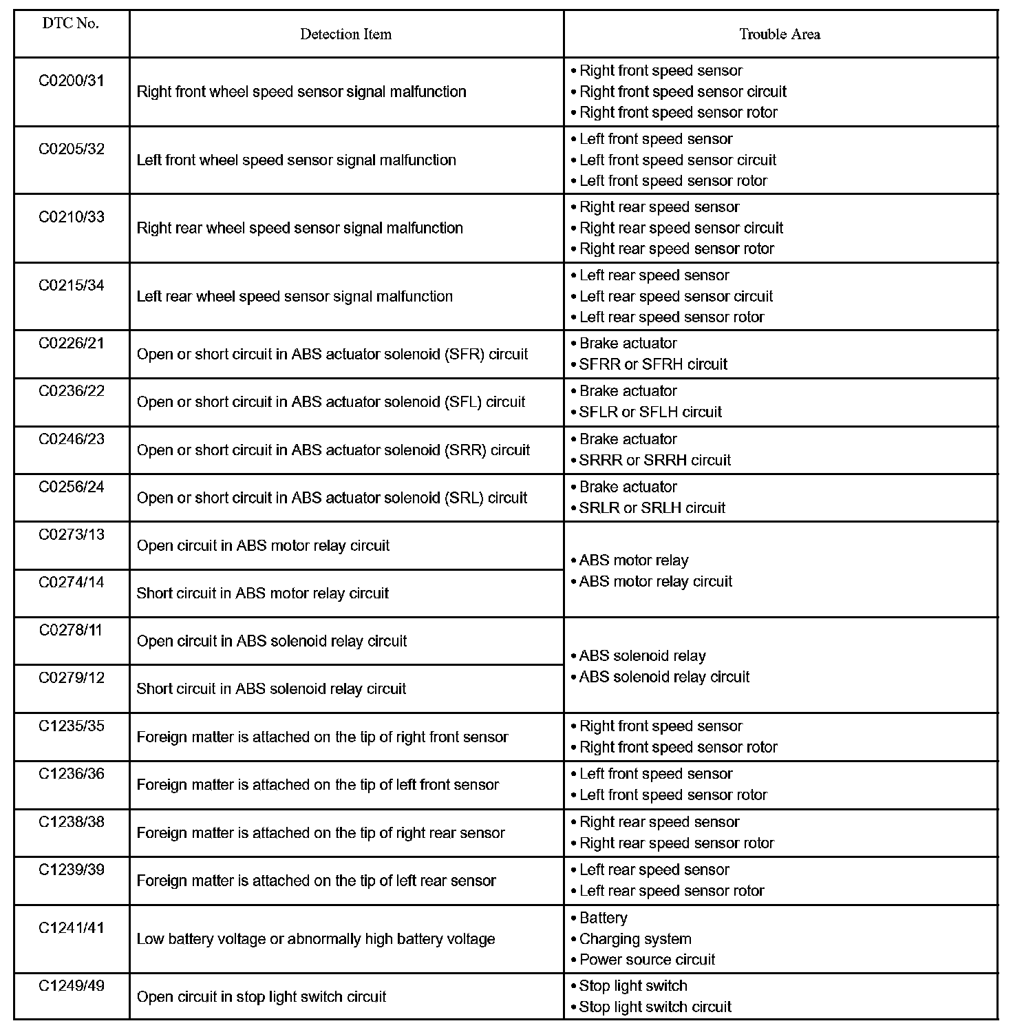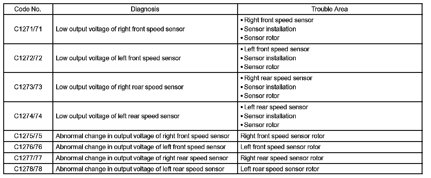 DTC of speed sensor check function