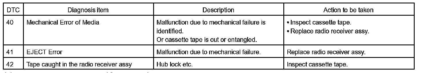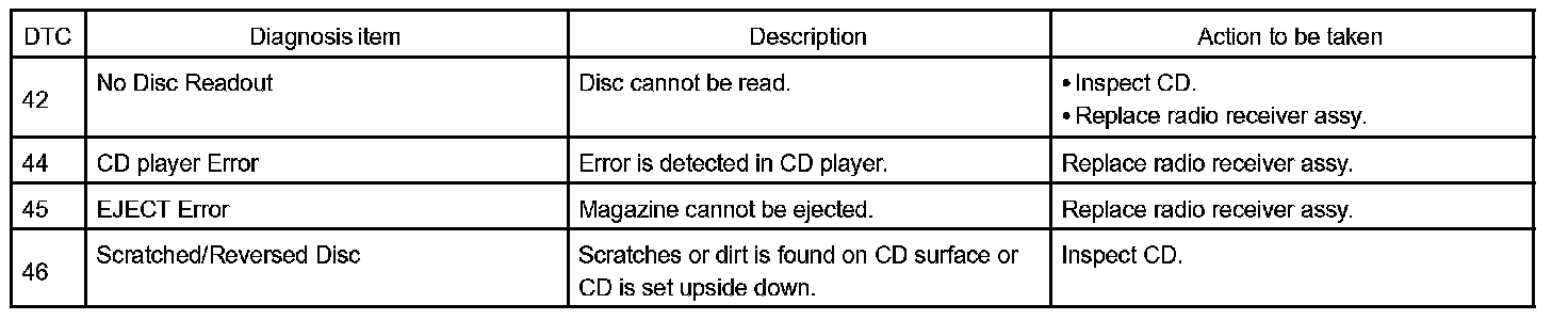 DIAGNOSTIC TROUBLE CODE CHART1. RADIO RECEIVER ASSY (Physical address: 190)