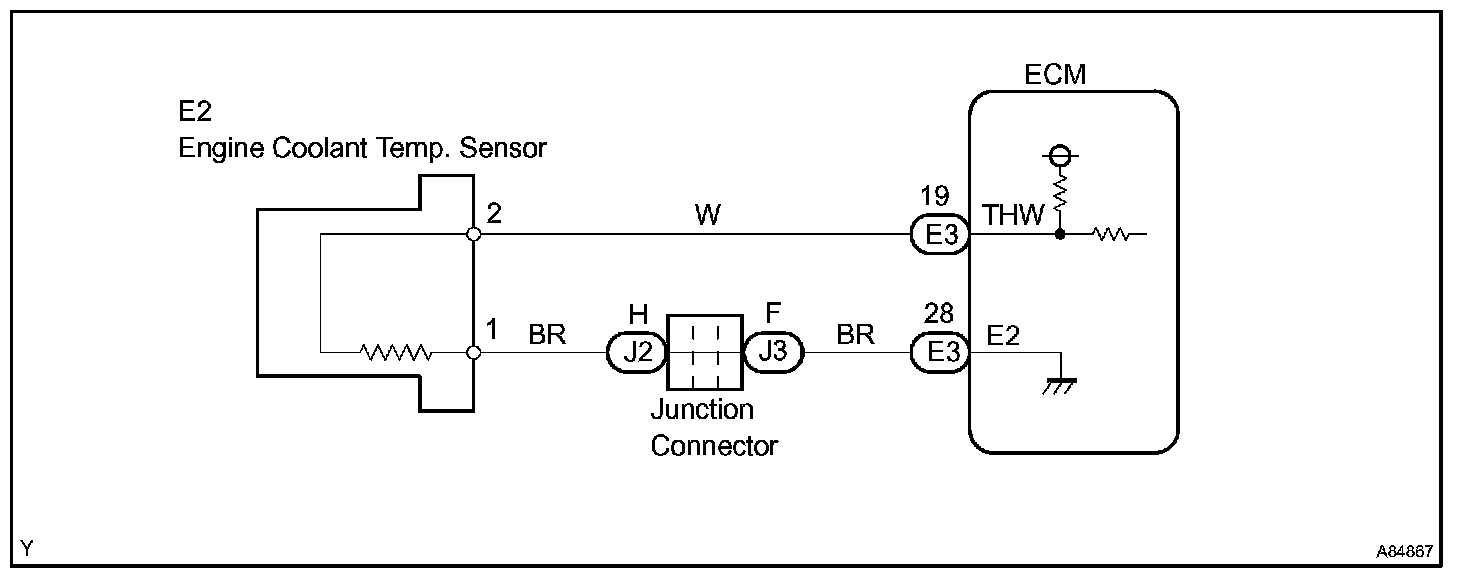 A thermistor is built in the engine coolant temperature sensor and changes the resistance value according to the engine coolant temperature.