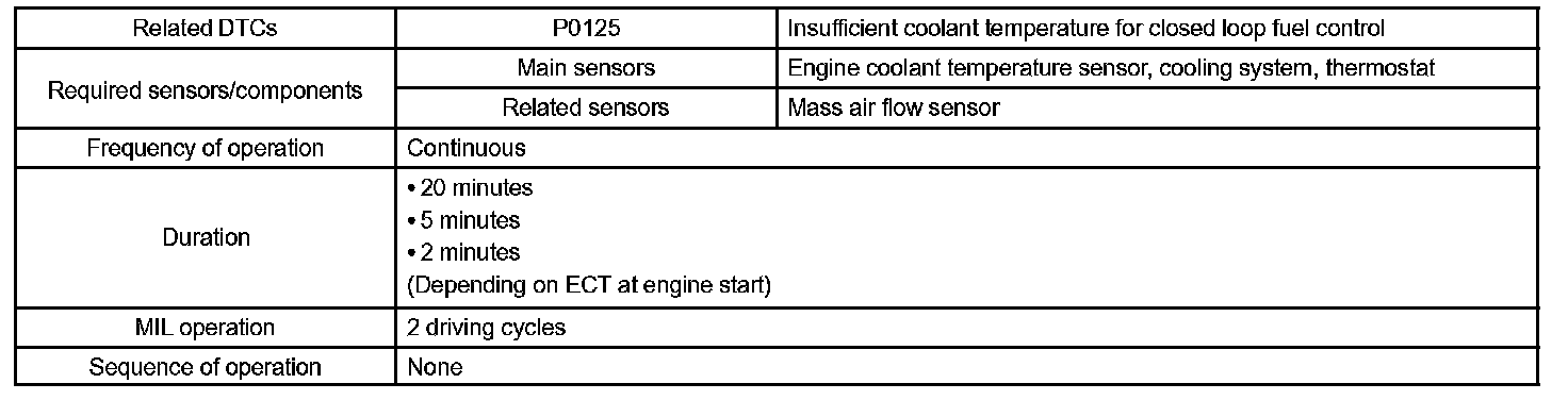 DTC P0125 INSUFFICIENT COOLANT TEMPERATURE FOR CLOSED LOOP FUEL CONTROLCIRCUIT DESCRIPTION