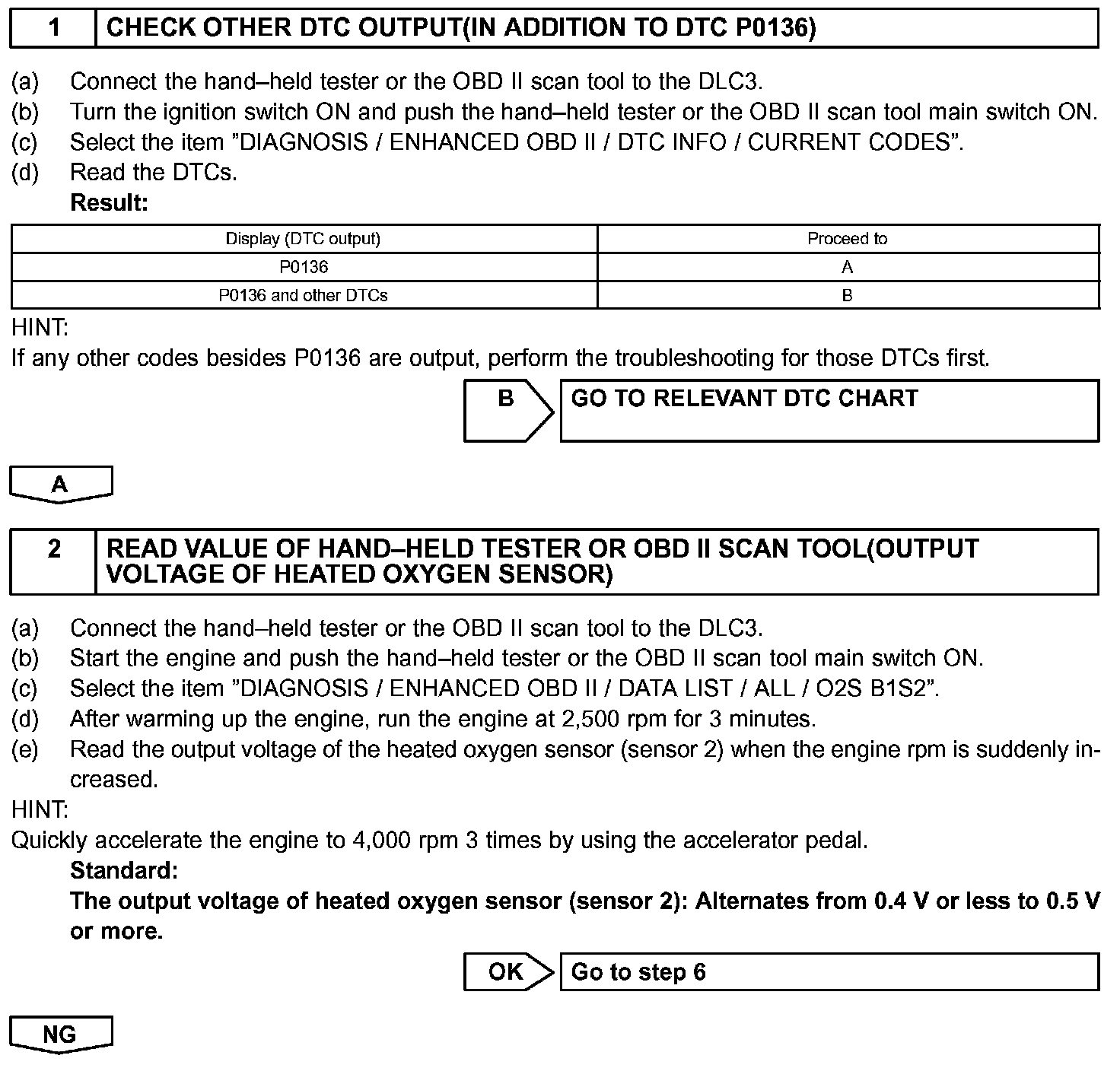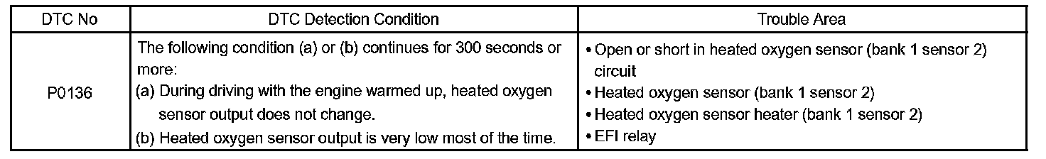 DTC P0136 OXYGEN SENSOR CIRCUIT MALFUNCTION (BANK 1 SENSOR 2)CIRCUIT DESCRIPTION