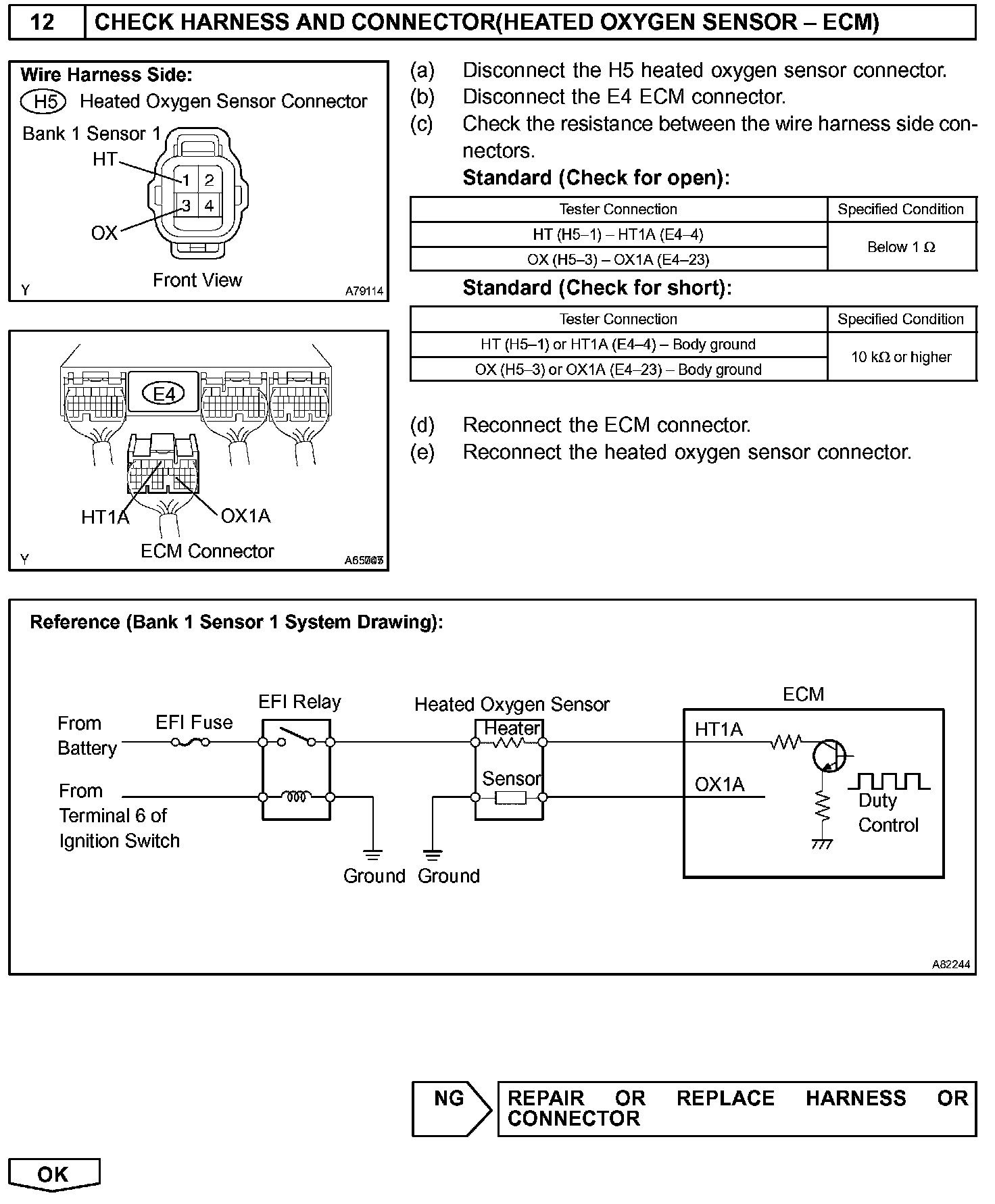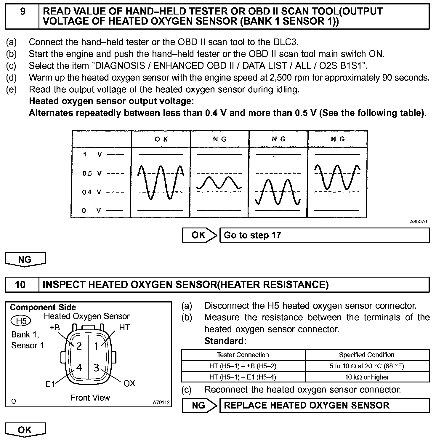 - A low heated oxygen sensor (sensor 1) voltage (0.4 V or less) could be caused by a lean air fuel mixture. Check for conditions that would cause the engine to run lean.