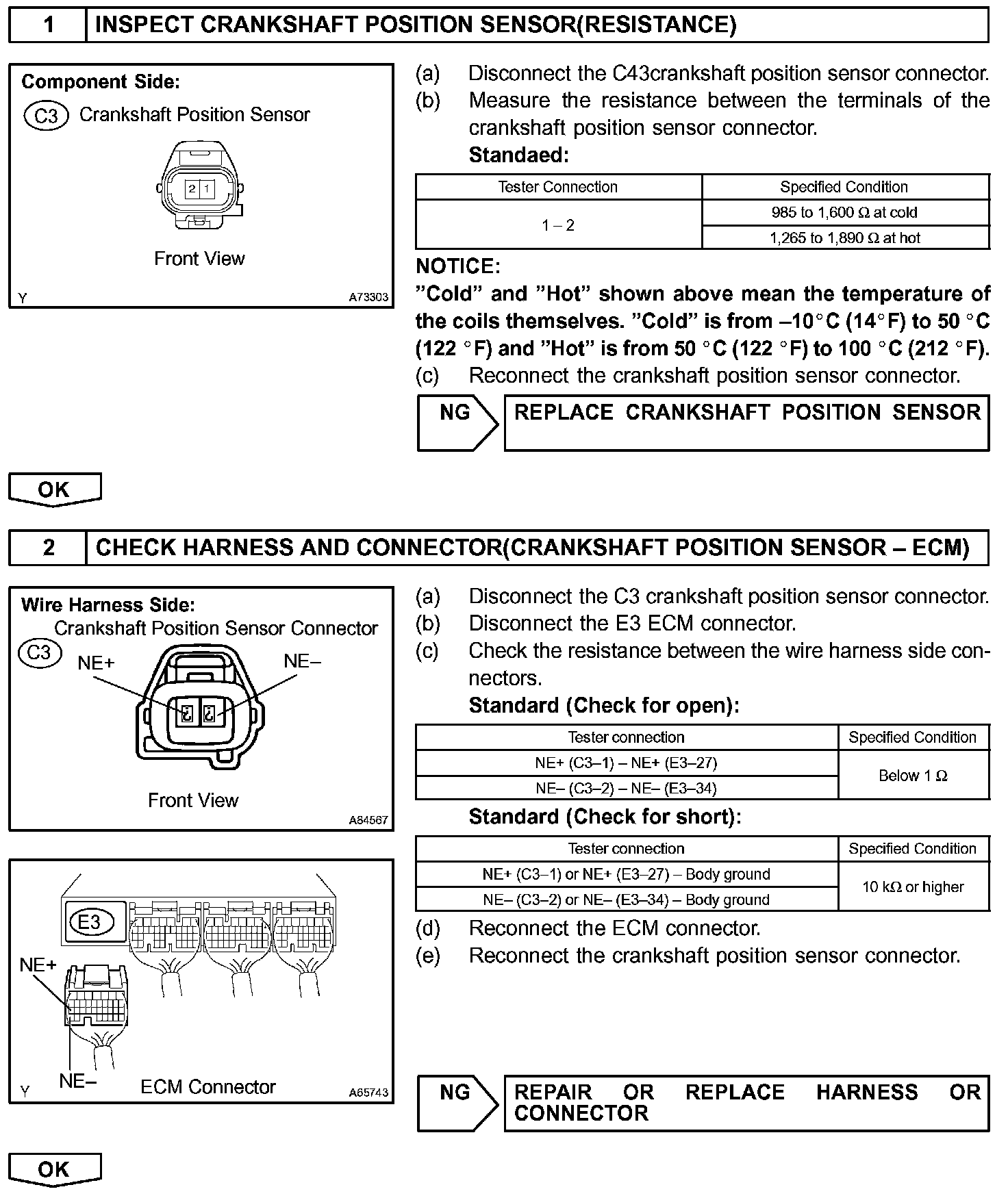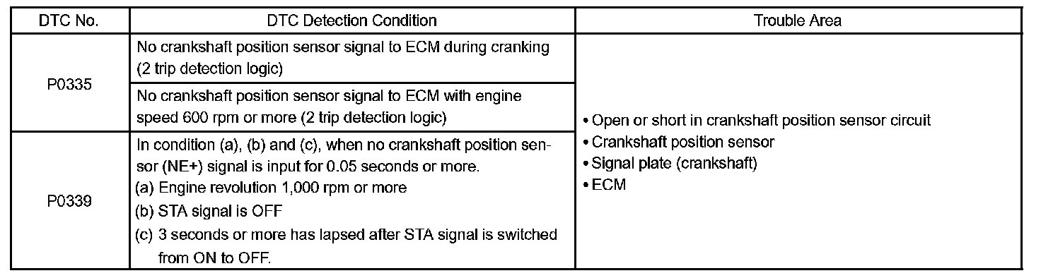 - Perform the troubleshooting of DTC P0335 first. If no trouble is found, troubleshoot the engine mechanical systems.