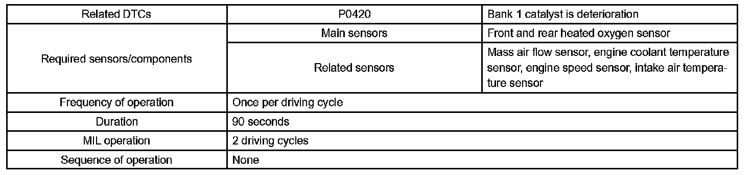 DTC P0420 CATALYST SYSTEM EFFICIENCY BELOW THRESHOLD (BANK 1)CIRCUIT DESCRIPTION