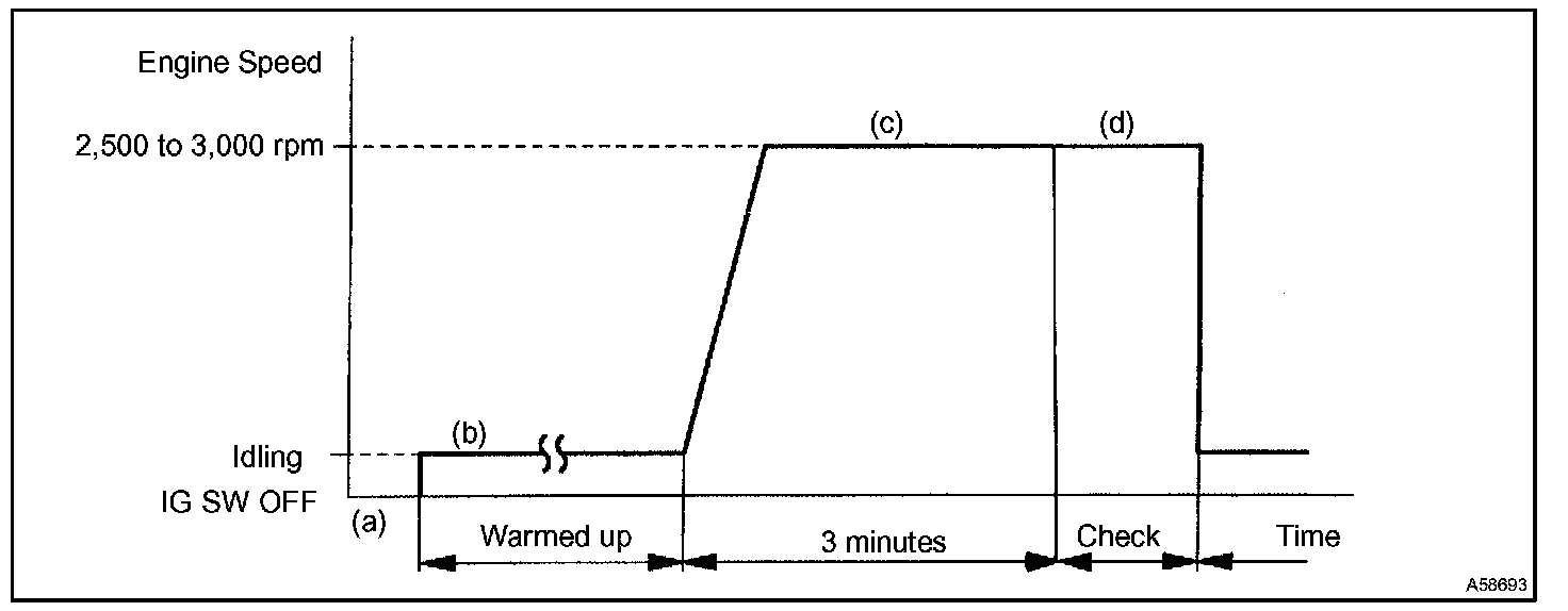 b. Start the engine and warm it up with all the accessories switched OFF until the engine coolant temperature becomes stable.