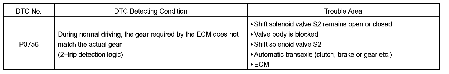 DTC P0756 SHIFT SOLENOID "B" PERFORMANCE (SHIFT SOLENOID VALVE S2)SYSTEM DESCRIPTION