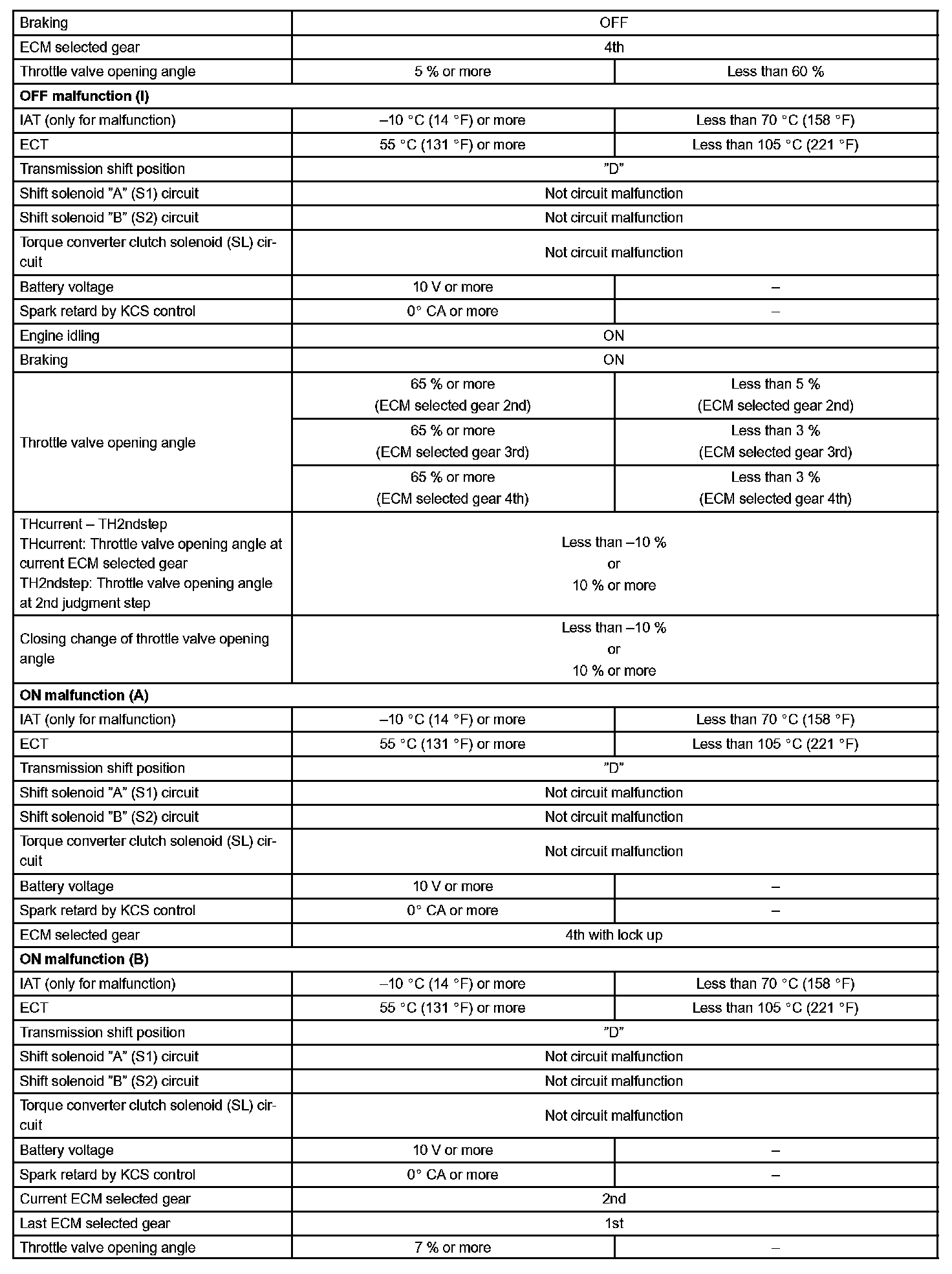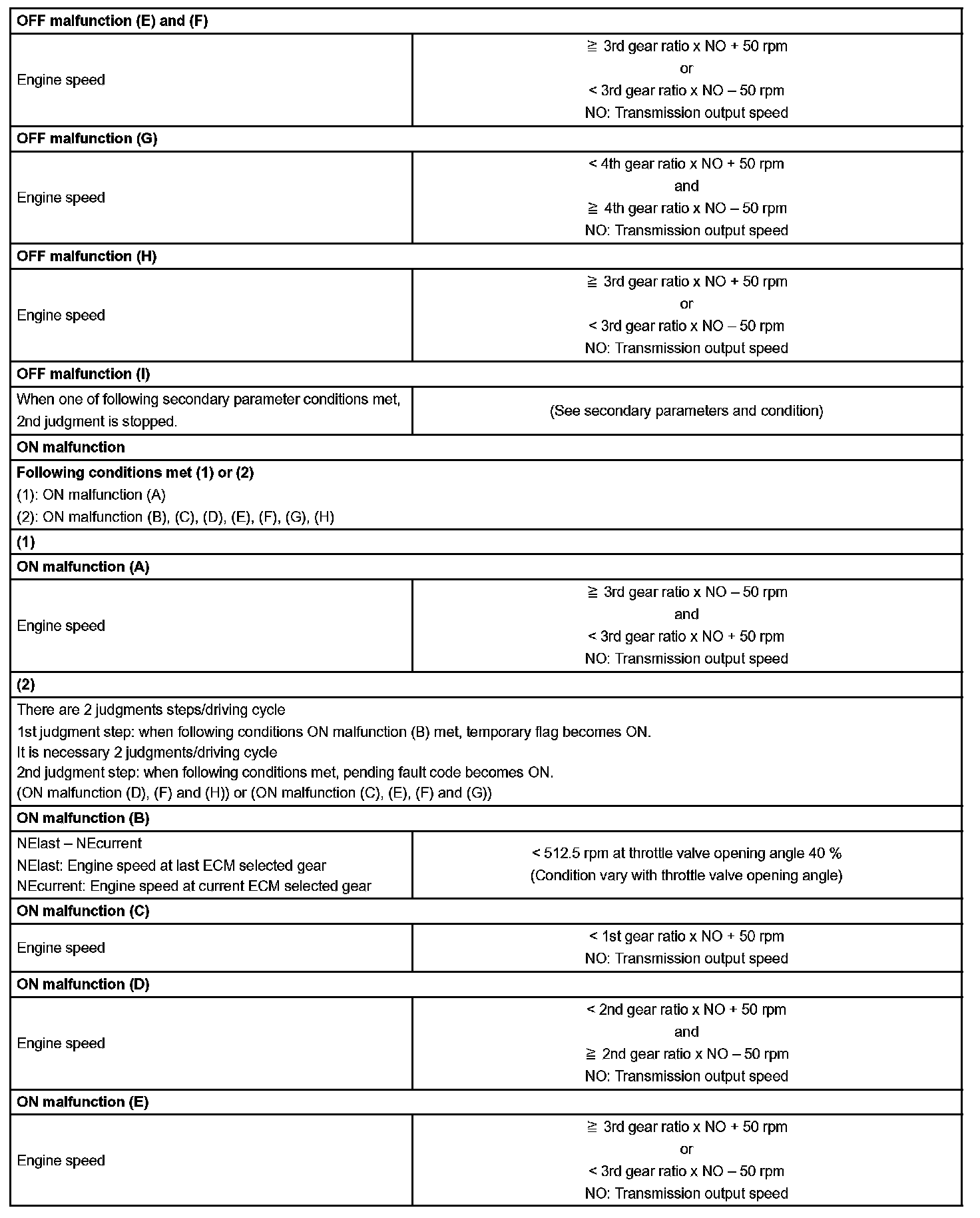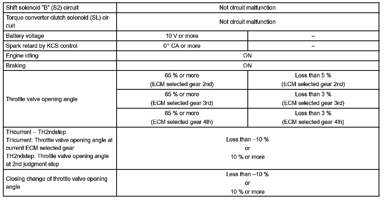 Then the ECM compares the actual gear with the shift schedule in the ECM memory to detect the mechanical trouble of the shift solenoid valves, the valve body or automatic transaxle (clutch, brake or gear etc.).