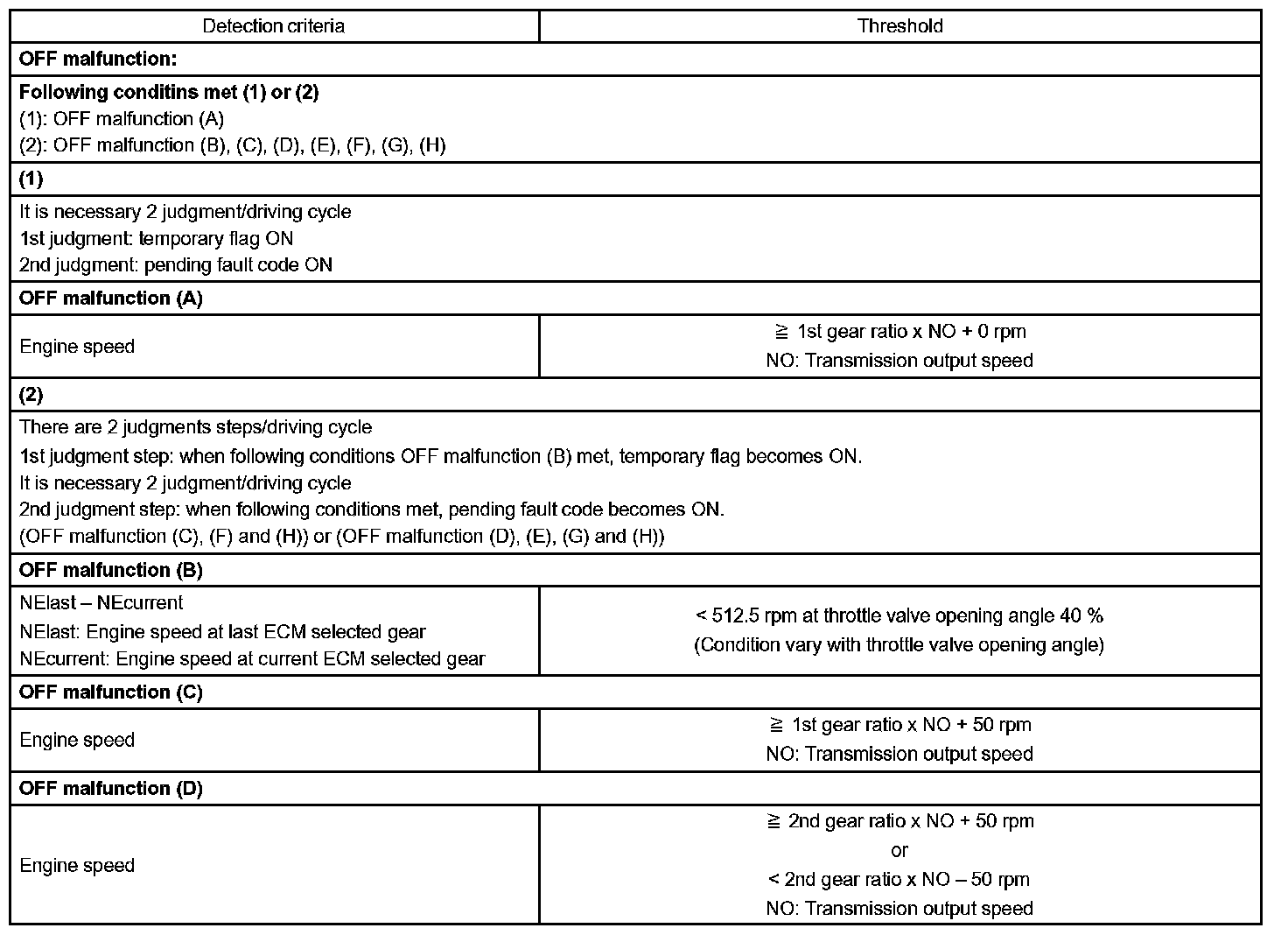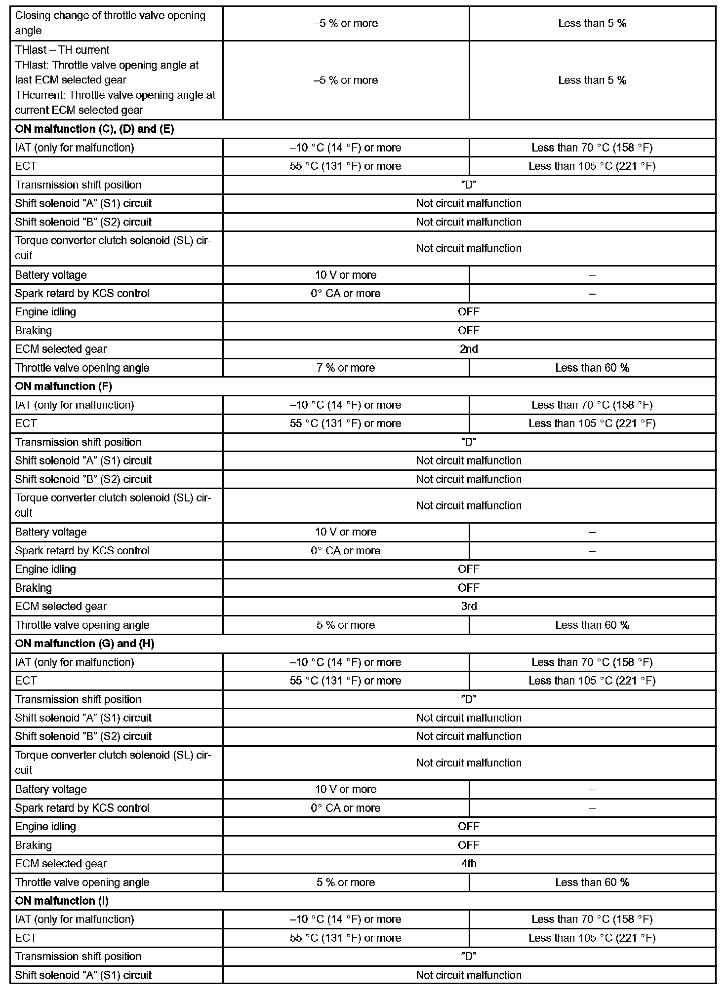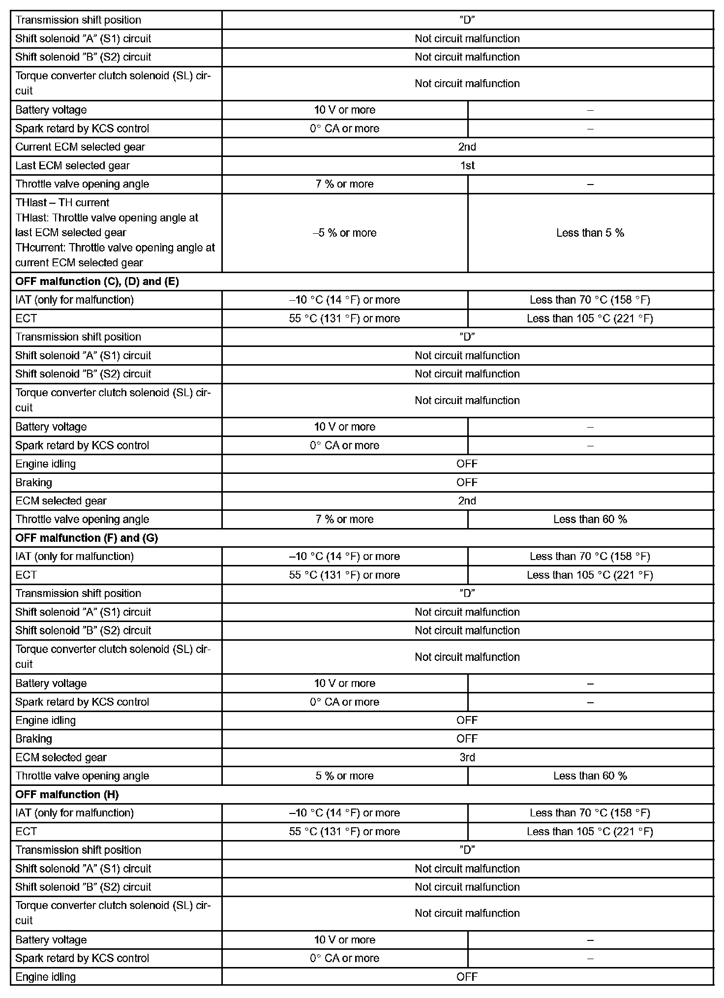 Then the ECM compares the actual gear with the shift schedule in the ECM memory to detect the mechanical trouble of the shift solenoid valves, the valve body or automatic transaxle (clutch, brake or gear etc.).