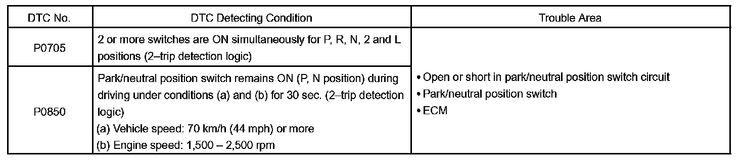 DTC P0850 PARK/NEUTRAL SWITCH INPUT CIRCUITCIRCUIT DESCRIPTION