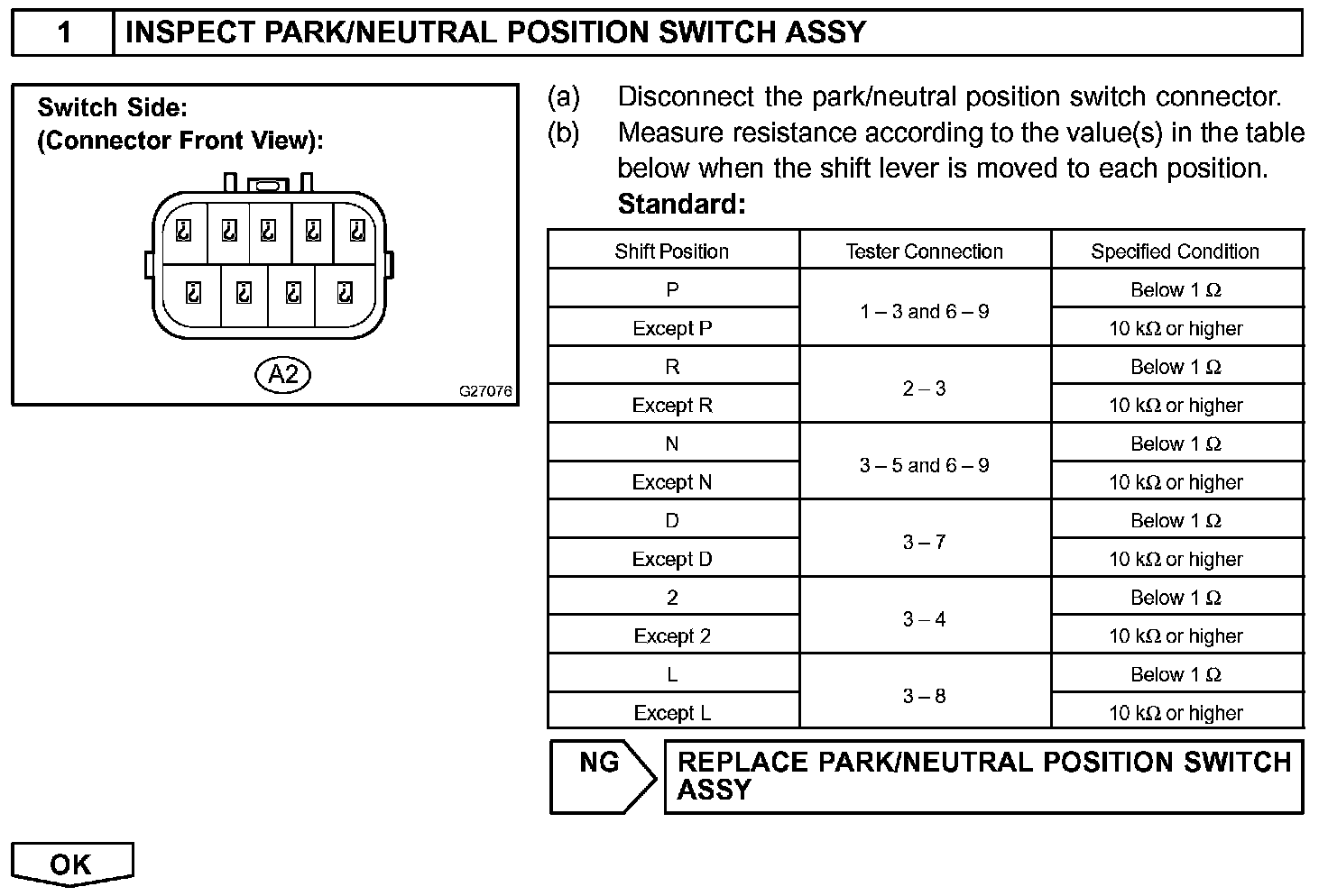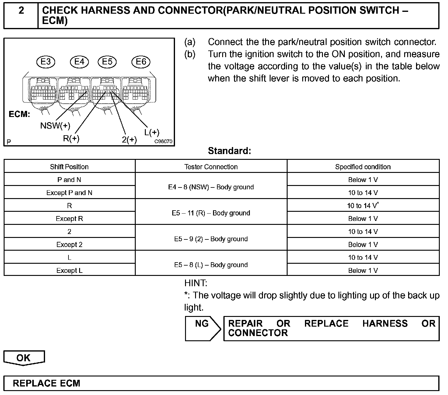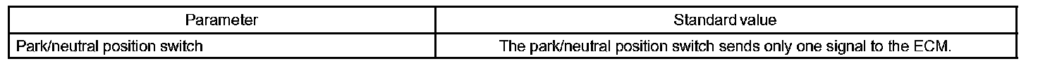 When the park/neutral position switch sends more than one signal at a time from switch positions P, R, N, 2, or L the ECM interprets this as a fault in the switch. The ECM will turn on the MIL.