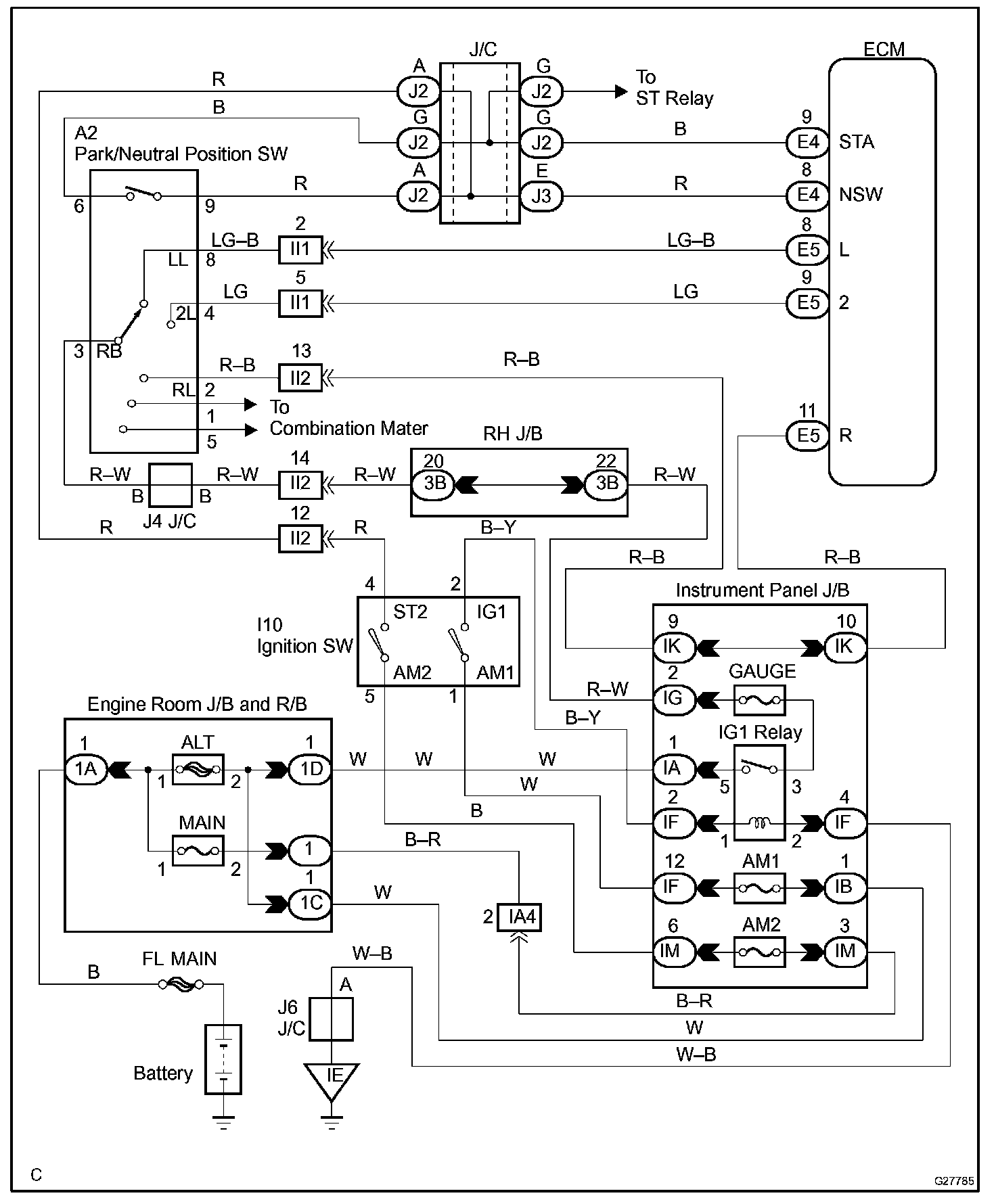 The park/neutral position switch detects the gearshift position and sends a signal to the ECM.