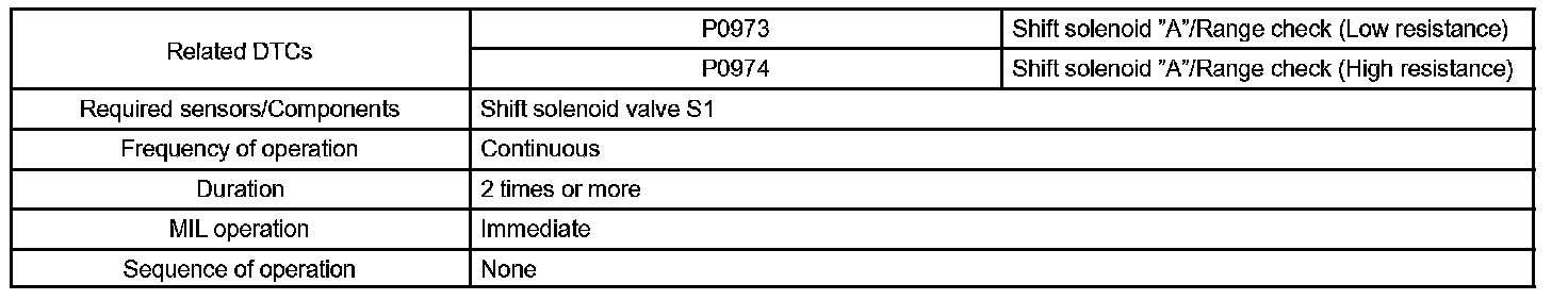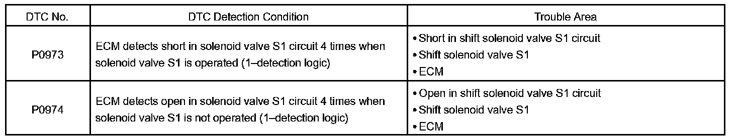 DTC P0973 SHIFT SOLENOID "A" CONTROL CIRCUIT LOW (SHIFT SOLENOID VALVE S1)CIRCUIT DESCRIPTION