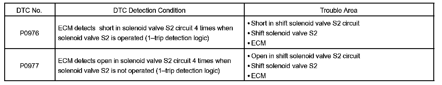 DTC P0977 SHIFT SOLENOID "B" CONTROL CIRCUIT HIGH (SHIFT SOLENOID VALVE S2)CIRCUIT DESCRIPTION