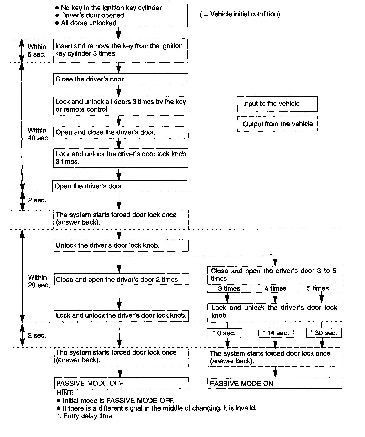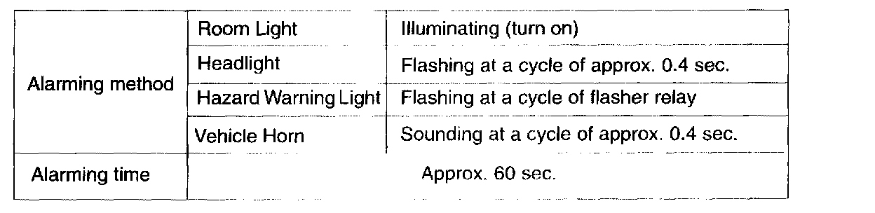 HINT: The theft deterrent system has 2 modes; one is the active mode that is an initially set mode and another is the passive mode that can be switched ON/OFF by the specified method (See step 4).