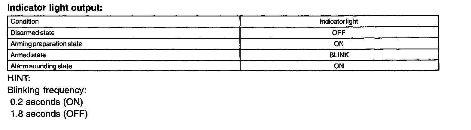 HINT: Each mode (active and passive) has 4 states; disarmed state, arming preparation state, armed state, alarm sounding state.
