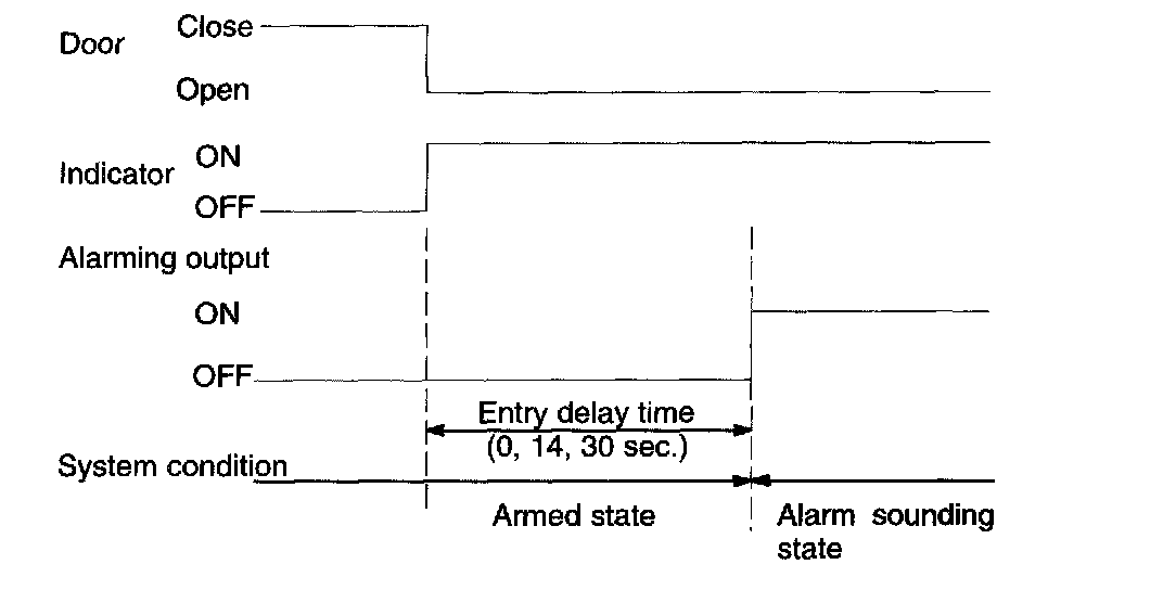 HINT: The entry delay time can be selected among 0, 14, 30 seconds by the customizing function.