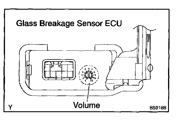 b. The sensitivity of the glass breakage sensor can be adjusted by the volume switch in the glass breakage sensor ECU.
