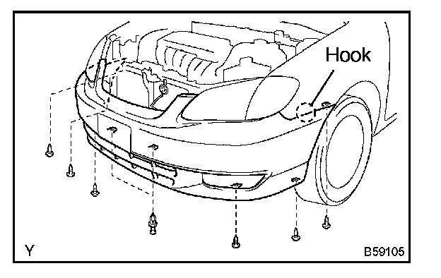 b. Disengage the hook, and remove the front bumper cover.