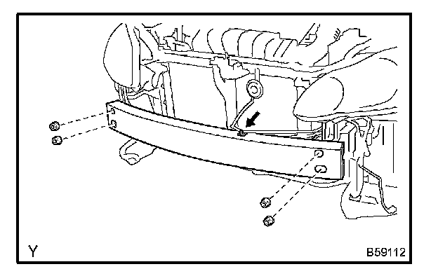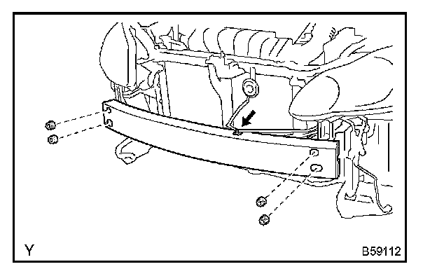 b. Remove the 4 nuts and front bumper reinforcement.