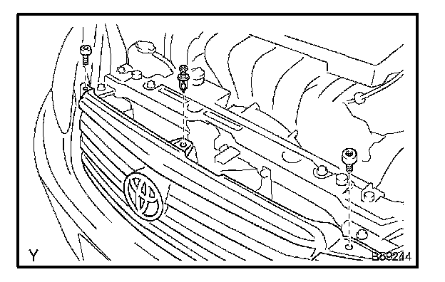 a. Install the radiator grille with the 2 bolts and clip