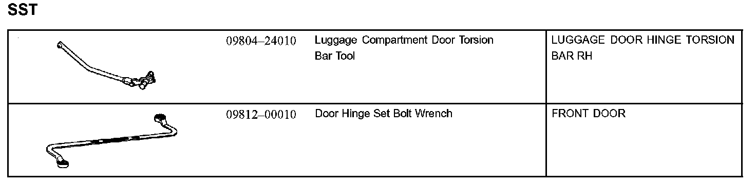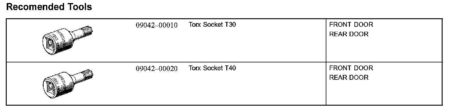 Doors, Hood and Trunk: Tools and Equipment