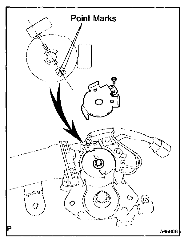 d. Turn the drive gear to align the point marks, as shown in the illustration.
