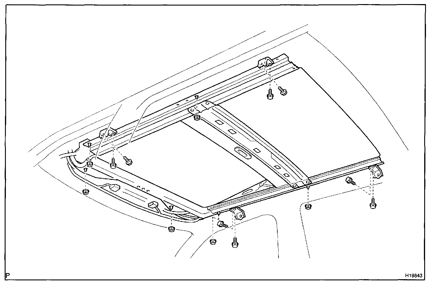 a. Using a torx wrench (T25), loosen the sliding roof glass installation screws.