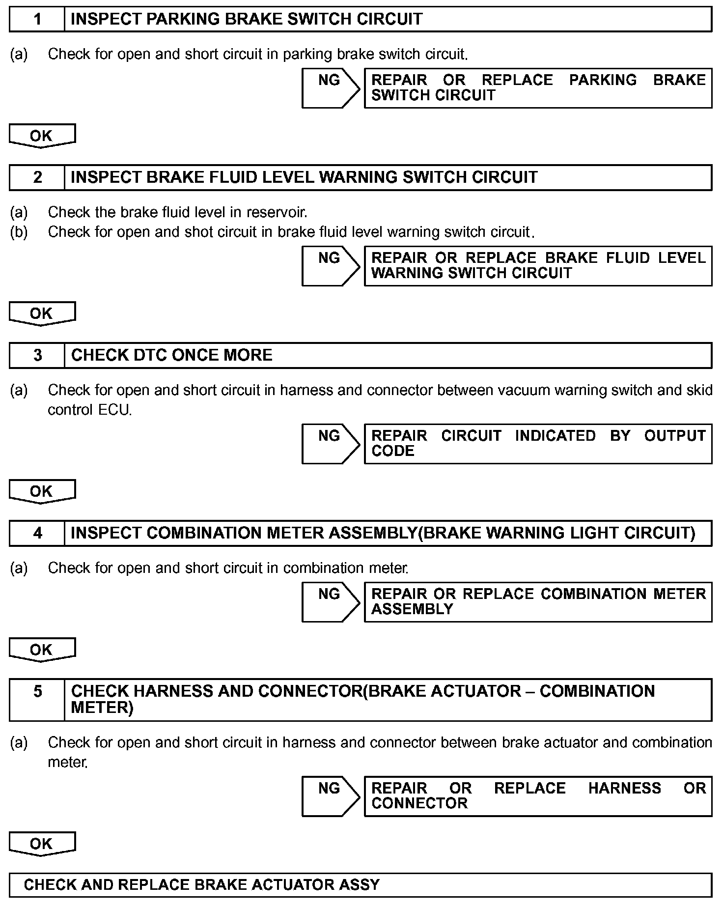 Connect terminals Tc and CG of the DLC3 to make the brake warning light blink and output the DTC.