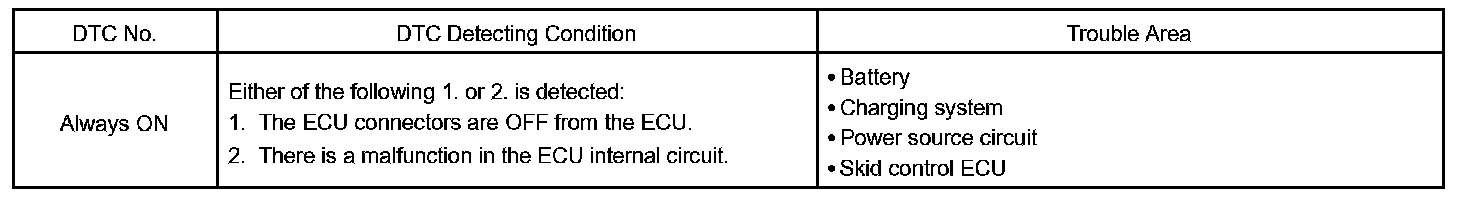 DTC Always ON MALFUNCTION IN ABS ECUCIRCUIT DESCRIPTION