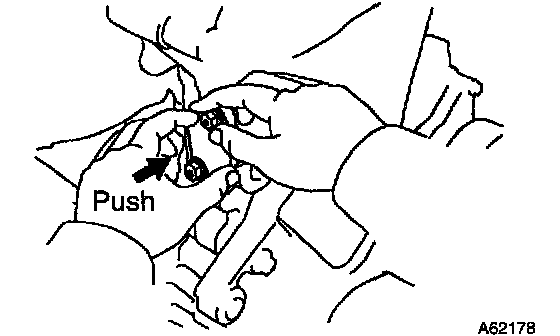 HINT: If the plunger does not spring out, press the slipper into the chain tensioner with a screwdriver so that the hook is released from the knock pin and the plunger springs out.