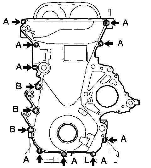 c. Remove the timing chain cover by prying the portions between the cylinder head and cylinder block with a screwdriver.