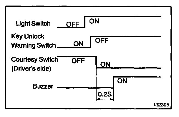 HINT: When the key unlock warning and light auto turn off warning is output simultaneously, the key unlock warning precedes the other.