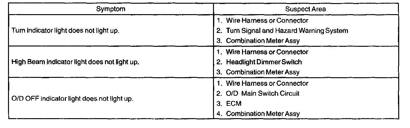 Problem Symptoms Table - Indicator Lights (Combination Meter):
