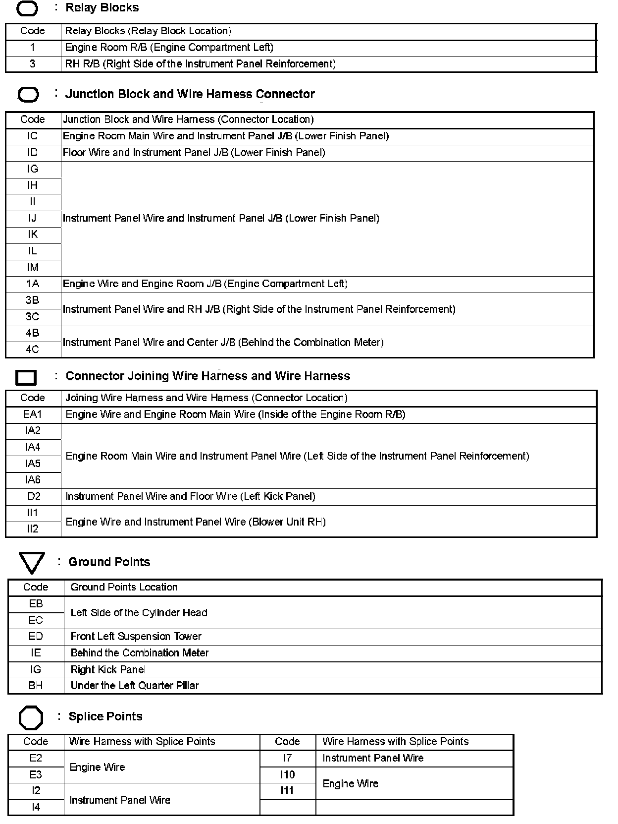 Locations: The locations of components, connectors, ground points, and splices referred to within these diagrams can be found at Vehicle Locations. Locations