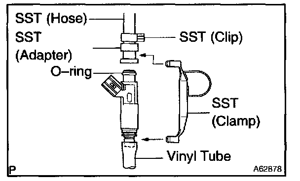 HINT: Install a suitable vinyl tube onto the injector to prevent gasoline from splashing out.