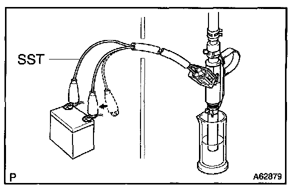 8. Connect SST to the battery for 15 seconds, and measure the injection volume with a graduated cylinder. Test the each fuel injector 2 or 3 time.