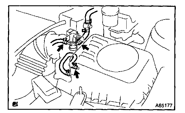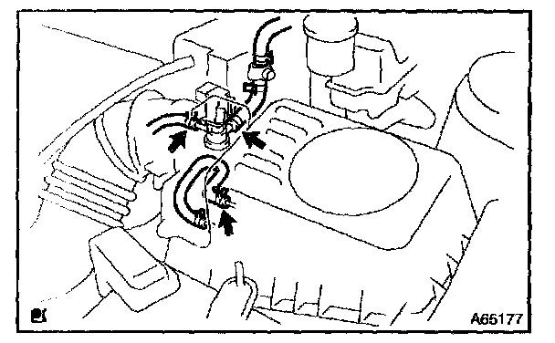 c. Disconnect 3 vacuum hoses, as shown in the illustration.