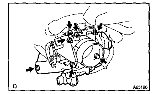 e. Remove 5 bolts, 2 nuts, throttle body bracket and throttle body. (Transaxle M/T)